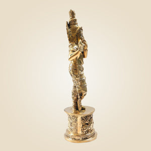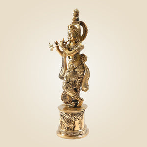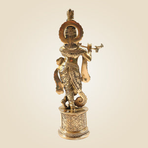 Krishna Brass Idol 15" - Flute Player Murti on Round Base Solid Brass Sculpture