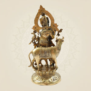 Lord Krishna Brass Idol – Murari Krishna with Cow Handcrafted Murti 12"