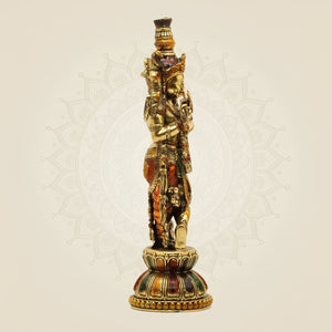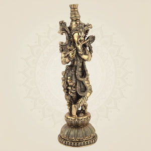 Lord Krishna Playing Flute Idol -10.75 Pure Brass Handcrafted Lightweight Statue