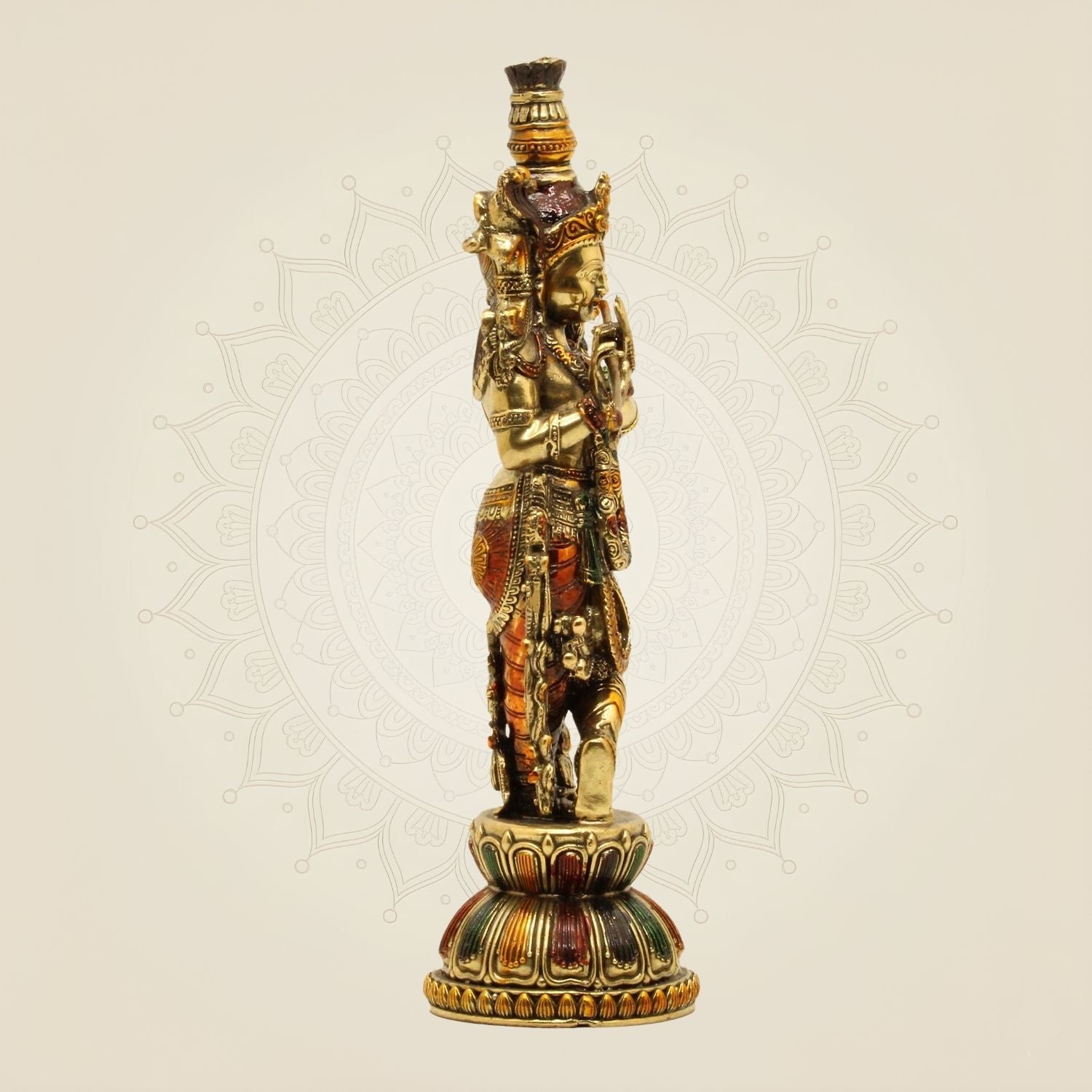 A. Each brass statue is meticulously handcrafted by skilled artisans who use traditional techniques passed down through generations. This craftsmanship ensures that every statue is rich in intricate details and precision, reflecting the artist's dedication to creating a perfect representation of the deity or figure. The careful attention to detail not only enhances the aesthetic beauty of the idol but also imbues it with a sense of spiritual significance, making each piece a truly unique and sacred work of art.