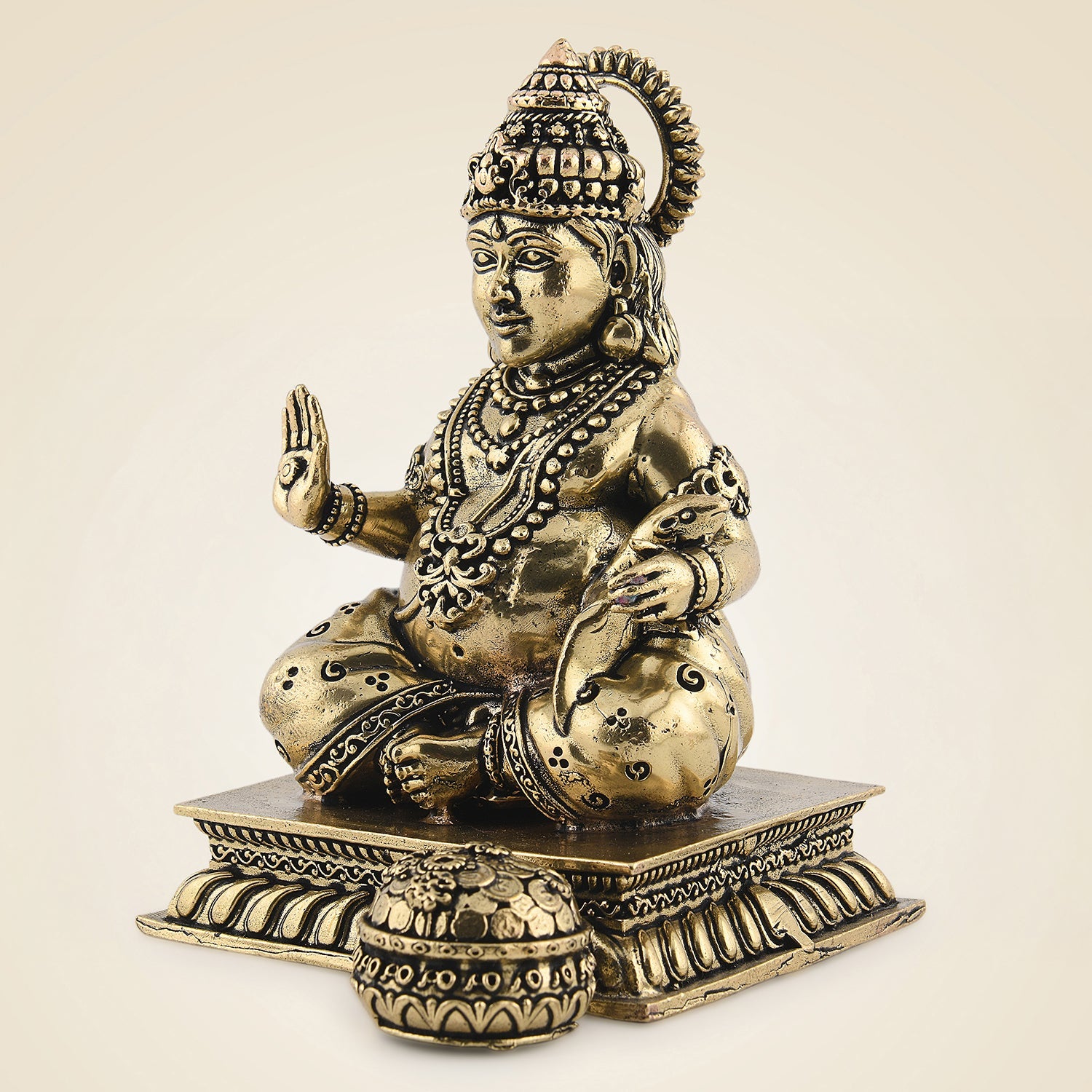 Elevate your space with this exquisite 3.75" handcrafted Lord Kuber brass idol, meticulously crafted to symbolize wealth and fortune. Expertly detailed, it serves as a powerful emblem for attracting prosperity and positive energy. Perfect for home or office, this superfine statue blends traditional artistry with spiritual significance, making it an ideal choice for those seeking abundance and success. Durable and elegant, it enhances your décor while inviting auspicious vibes.