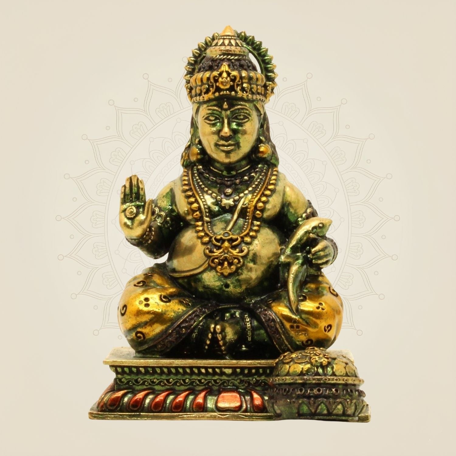 Pure Brass Lord Kuber Sculpture 5" – Lightweight Idol for Wealth, Vastu & Worship