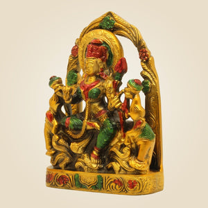 Crafted from durable brass, this 8-inch Goddess Lakshmi idol features intricate hand-painted details and is adorned with elephants symbolizing prosperity and protection. Perfect for enhancing your spiritual space, it offers a timeless representation of wealth and well-being through expert craftsmanship and traditional artistry.