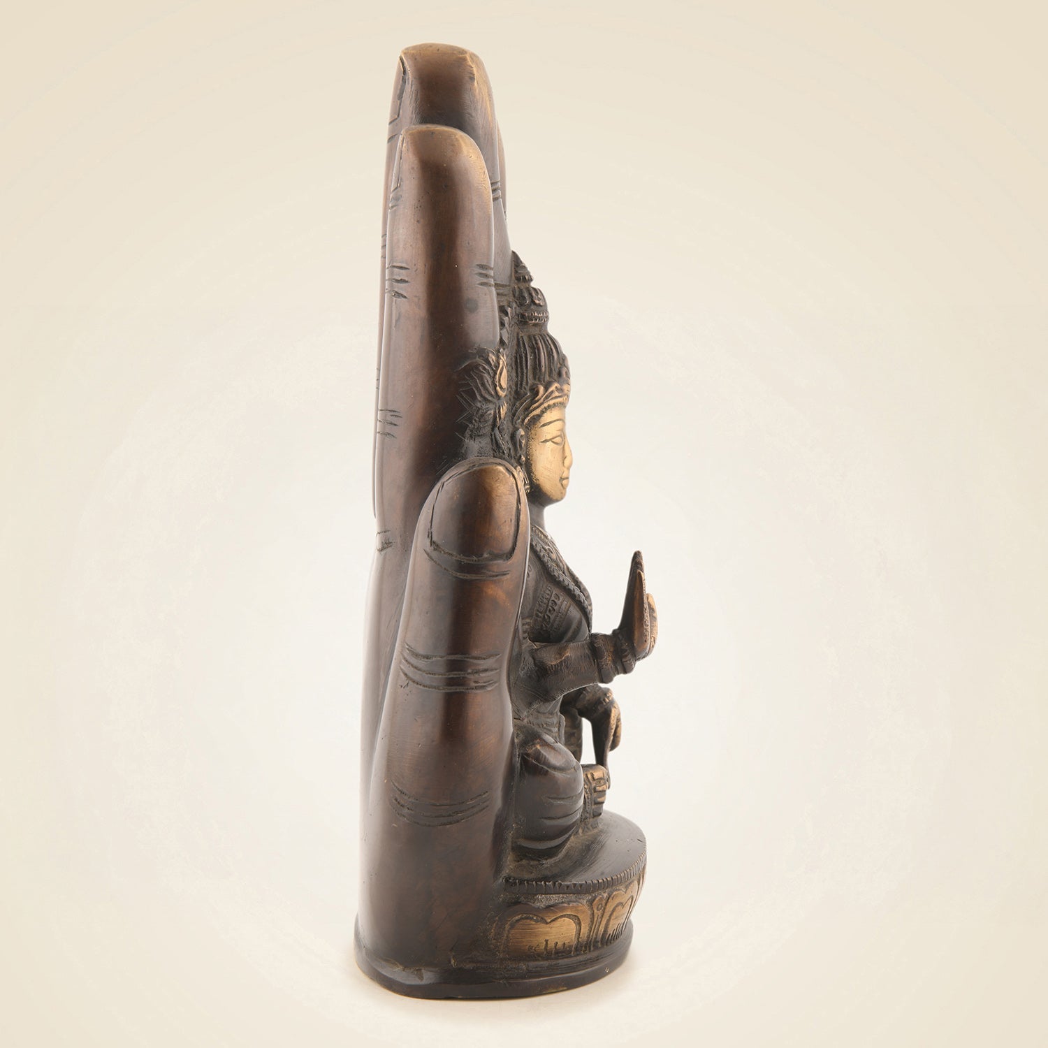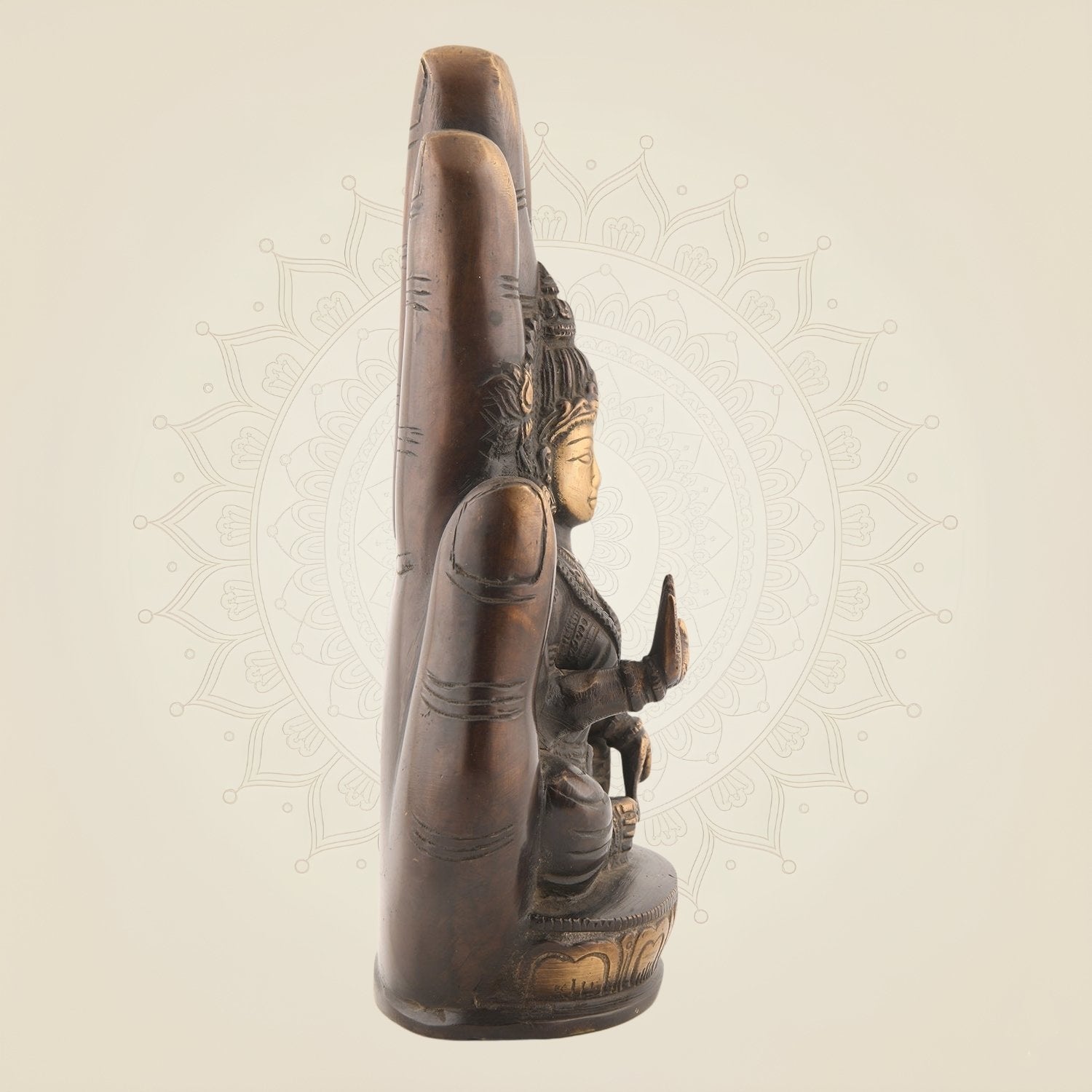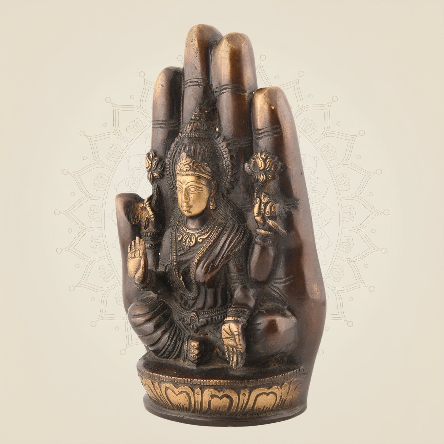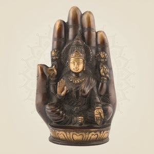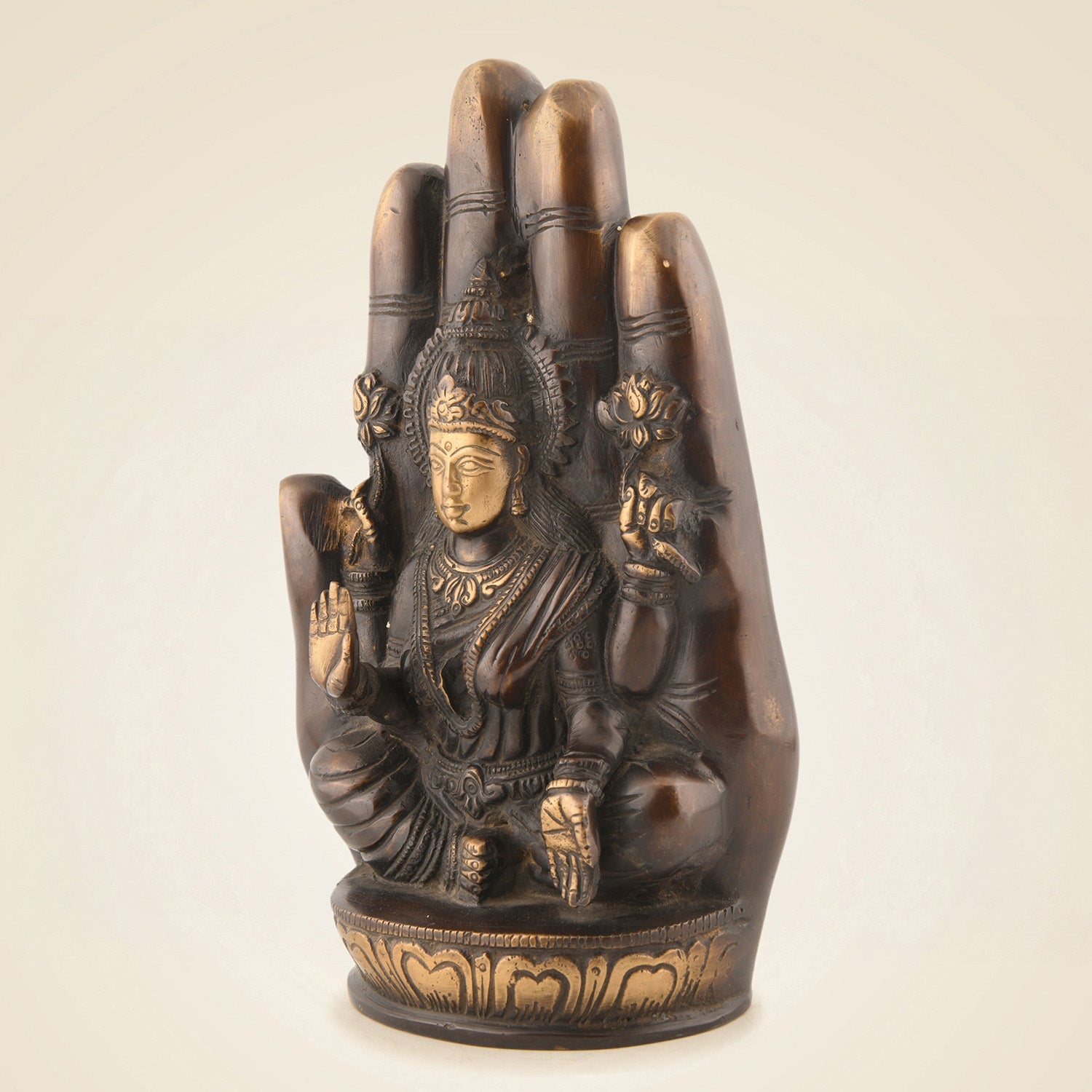 Brass Lakshmi Idol on Palm 9″ – Butter Polish Finish laxmi ji Statue for Wealth & Prosperity