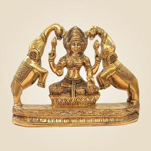 Laxmi Idol with 2 Elephants 7.5" – Handcrafted Brass Murti