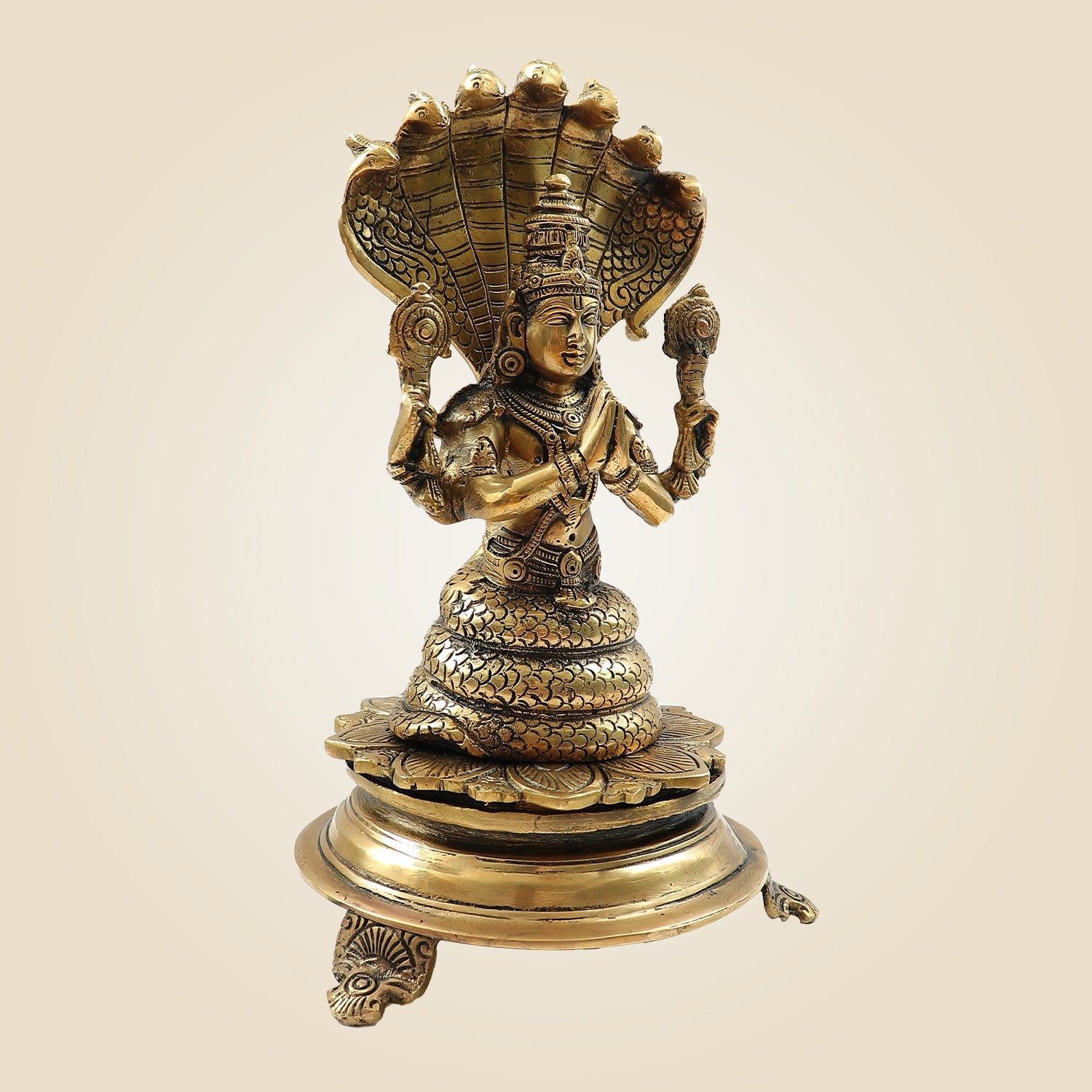 This 11-inch handcrafted brass idol of Maharishi Patanjali embodies expert craftsmanship, perfect for those seeking an authentic representation of the revered Yoga Master. Ideal for puja and meditation spaces, this statue offers a meaningful focal point that enhances spiritual practice and honors the legacy of Patanjali’s teachings. Its detailed design reflects dedication to traditional artistry, making it a distinguished addition to any sacred environment.