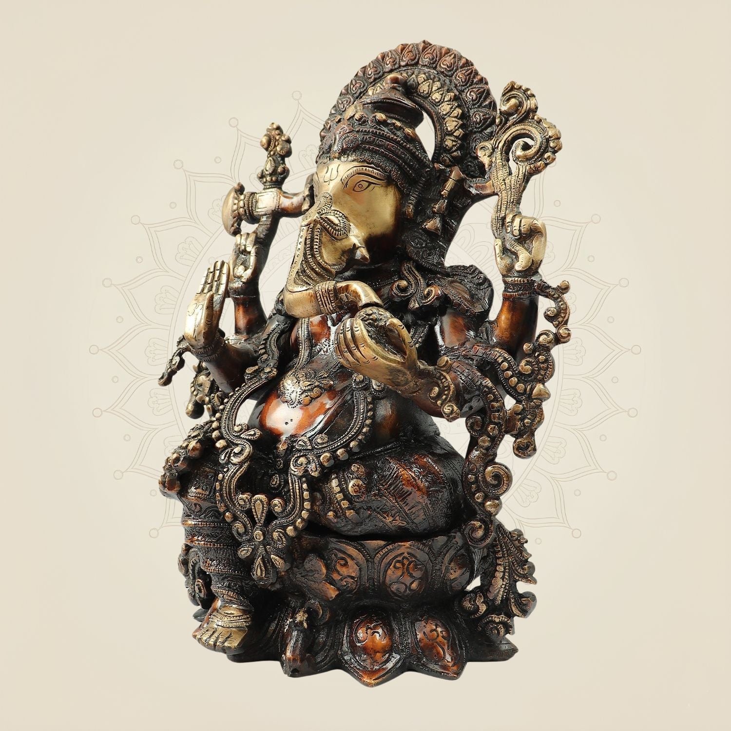 15.5" Ornate Brass Lord Ganesha Idol | Decorative Ganesh Statue for Temple, Home & Gift Purpose