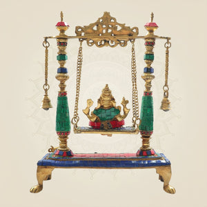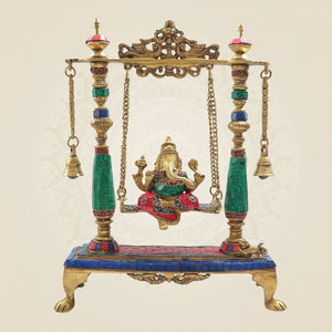 Brass Ganesh Ji Idol on Swing with Stone Work 16" | Traditional Ganesha Jhoola Statue for Pooja Decor