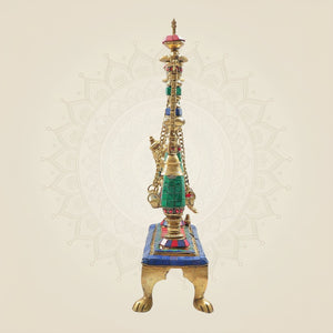 This exquisite 16" brass Ganesh Ji idol features intricate stone work and is beautifully mounted on a traditional swing. Ideal for pooja decor, it embodies both craftsmanship and spiritual significance. The detailed artistry and durable brass material make it a lasting centerpiece for any sacred space, enhancing the ambiance with its serene presence. Perfect for devotees seeking a meaningful and elegant representation of Lord Ganesha.