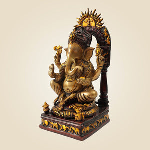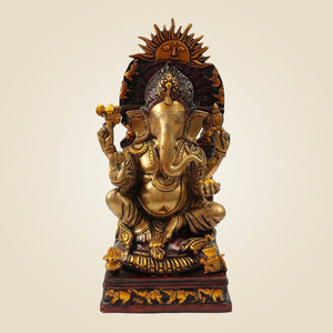 Handcrafted Brass Lord Ganesha Statue with Prabhavali 16"