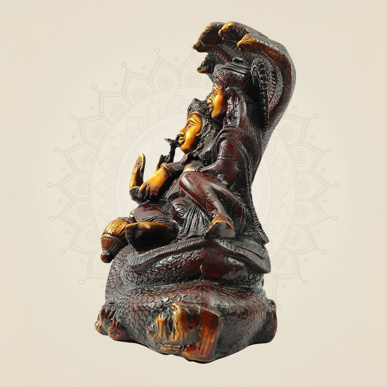 Handcrafted Brass Vishnu Laxmi Statue on Sheshnag – 9.5 Inch Idol