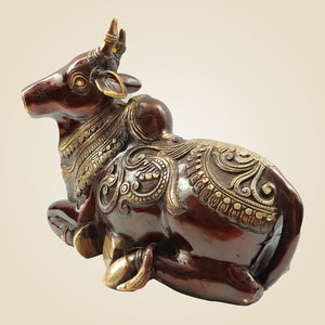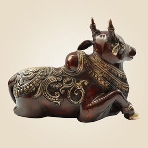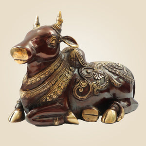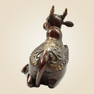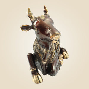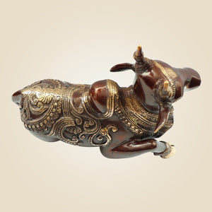 Heavy Brass Nandi Idol 9" Inch | Sacred Bull of Lord Shiva for Temple & Home Decor