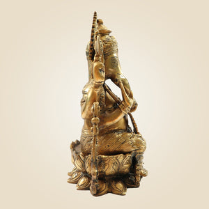 This 12.25" brass idol beautifully depicts Lord Ganesh seated on a lotus, symbolizing purity and spiritual awakening. Handcrafted with meticulous detail, this heavy Ganpati murti brings an aura of reverence and tradition to your space. Crafted from durable brass, it offers lasting elegance ideal for worship or as a distinguished decorative piece. Perfect for devotees seeking a meaningful addition to their home altar or office, this idol embodies divine blessings and artistic mastery.