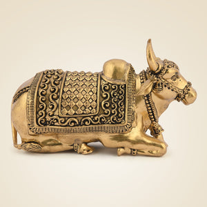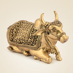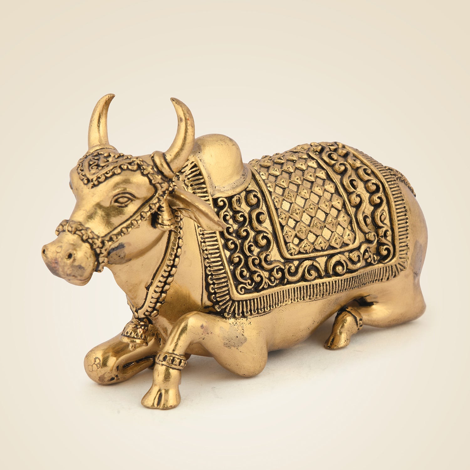 Divine Brass Nandi Murti - Lord Shiva’s Sacred Bull Statue 2.75" for Pooja & Home Decor