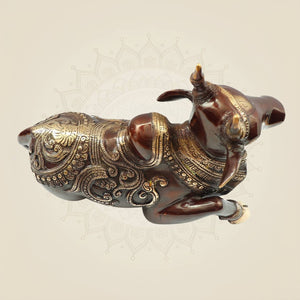 Heavy Brass Nandi Idol 9" Inch | Sacred Bull of Lord Shiva for Temple & Home Decor