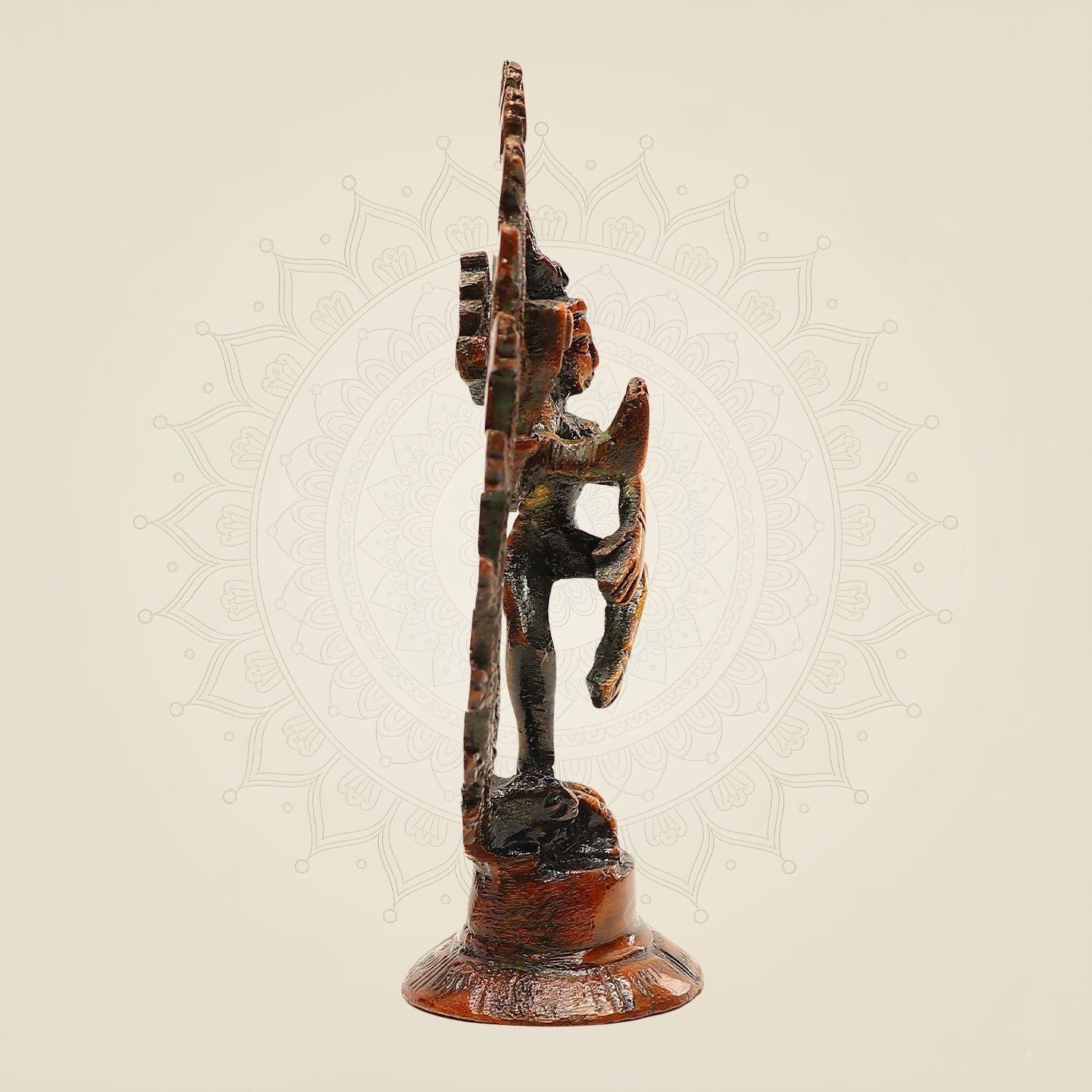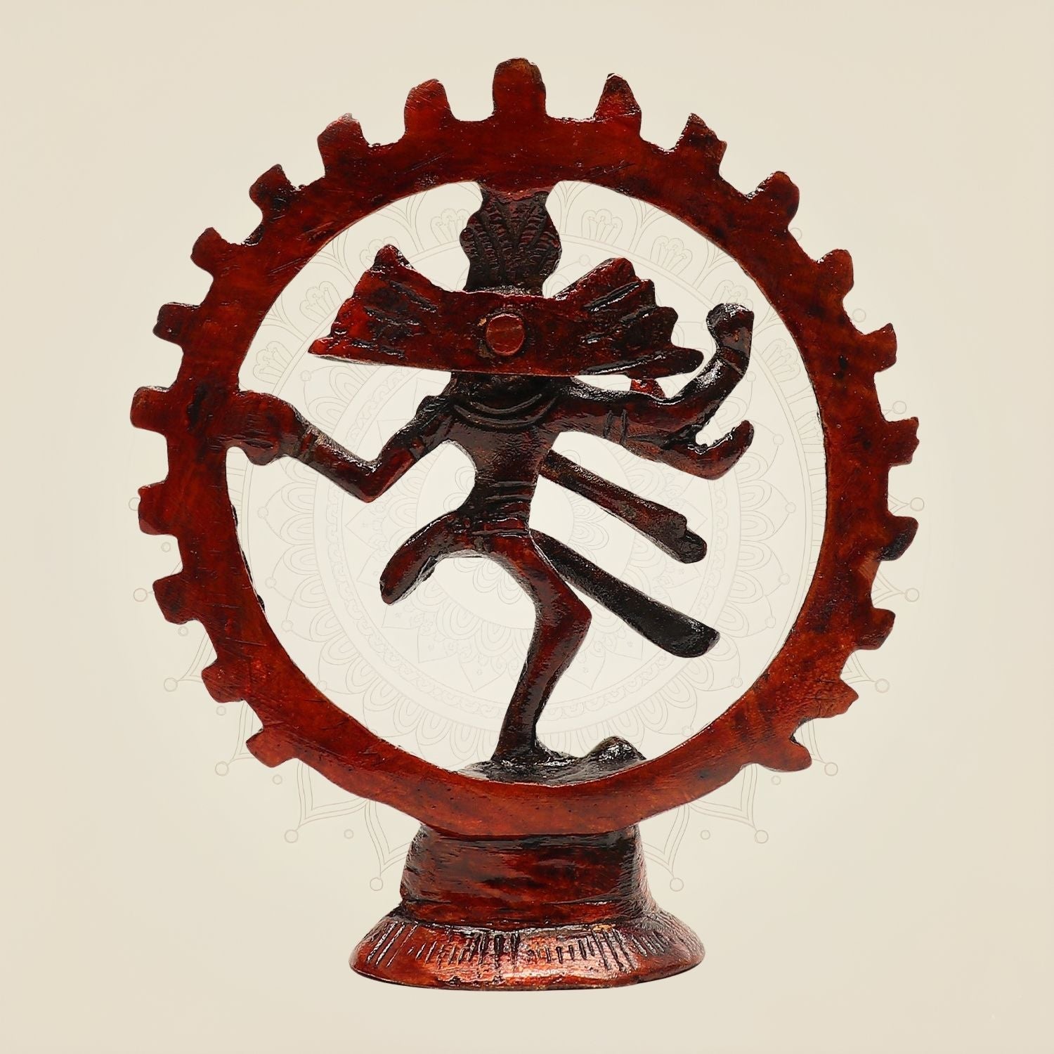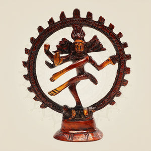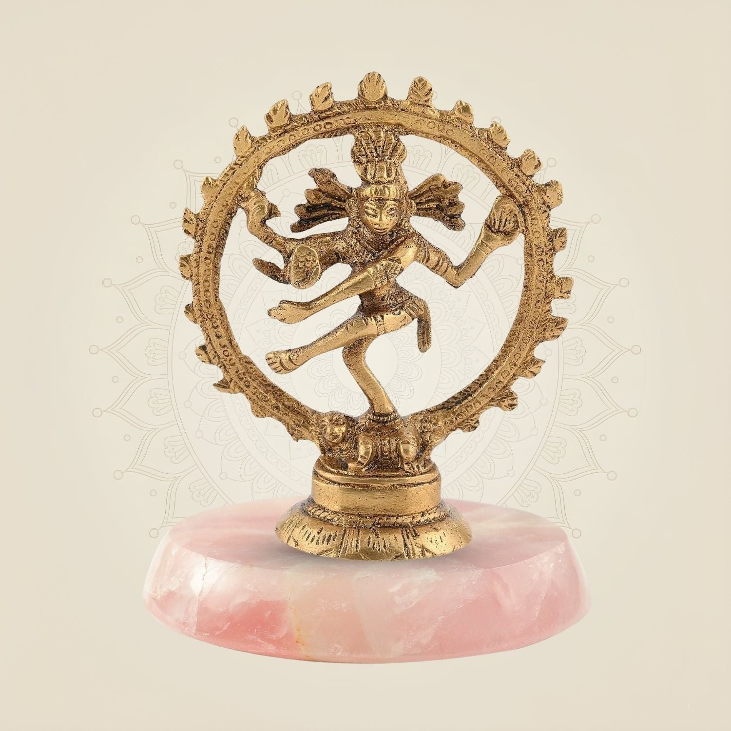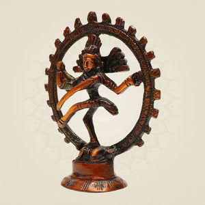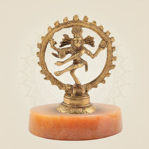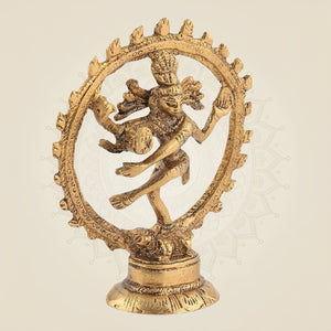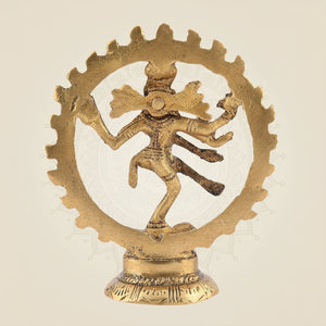 This intricately handcrafted Nataraja idol, made from pure brass, stands at a compact 4 inches tall. Its exquisite detailing captures the divine dance form of Lord Shiva, making it a perfect spiritual accent for your home or office. The durable brass construction ensures lasting beauty, while the small size allows for versatile placement in