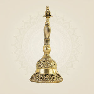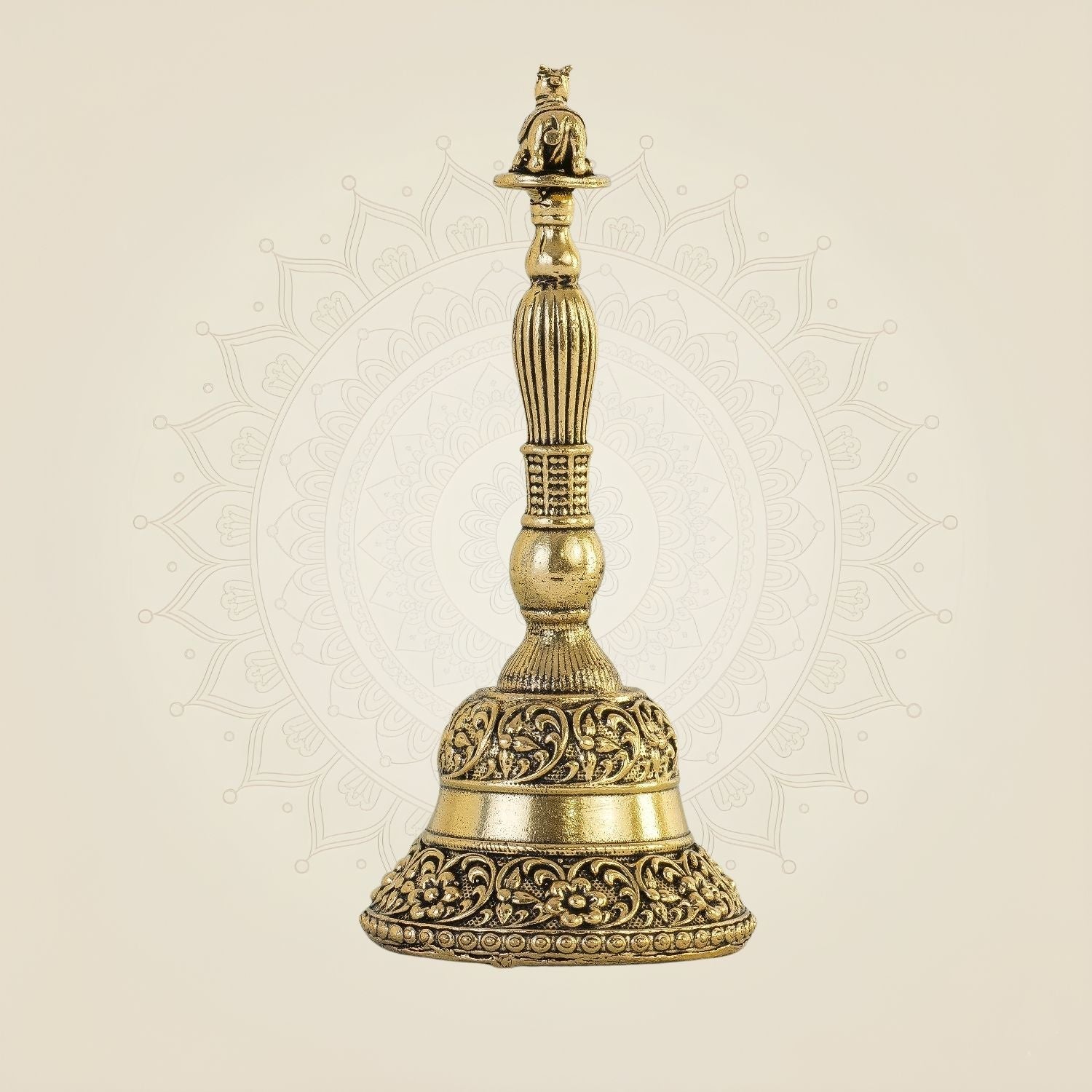 Pure Brass Nandi Pooja Bell – 4.5" Handcrafted Lightweight Temple Hand Bell for Ritual Use