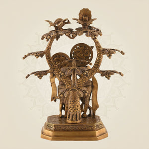 Brass Divine Radha Krishna Under Tree Idol – 16" Handcrafted Murti for Temple & Decor