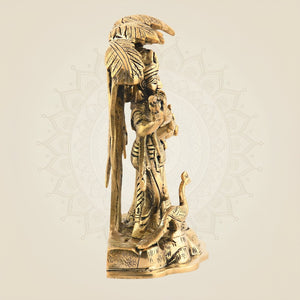 This finely crafted 5.25-inch brass Radha Krishna idol captures the essence of divine love and union. Depicting Radha and Krishna together under a tree, this piece symbolizes spiritual harmony and devotion. Its brass composition ensures lasting beauty, making it an...
