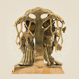 Brass Radha Krishna Idol Under Tree 5.25" - Symbol of Divine Love & Union