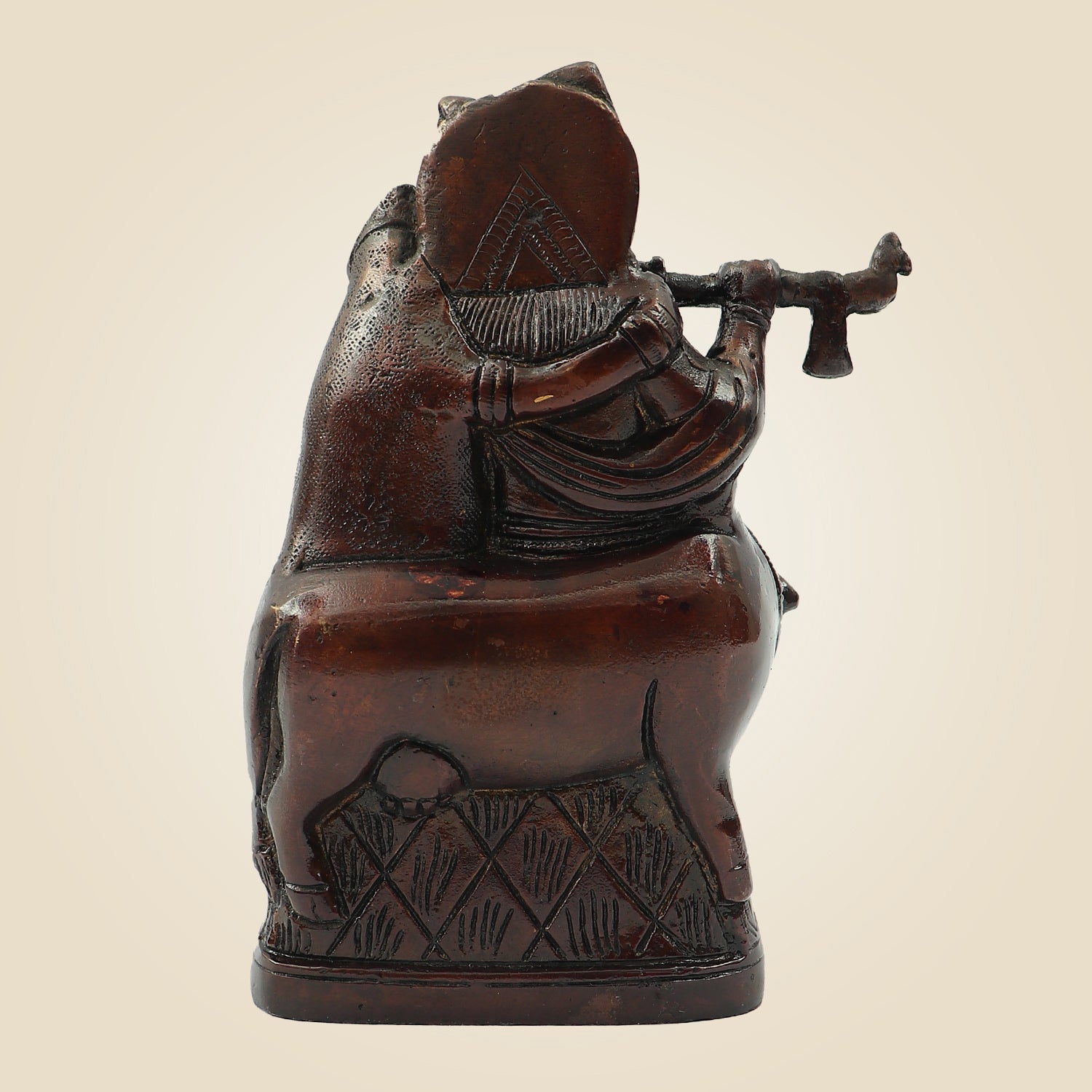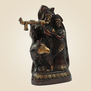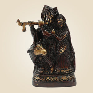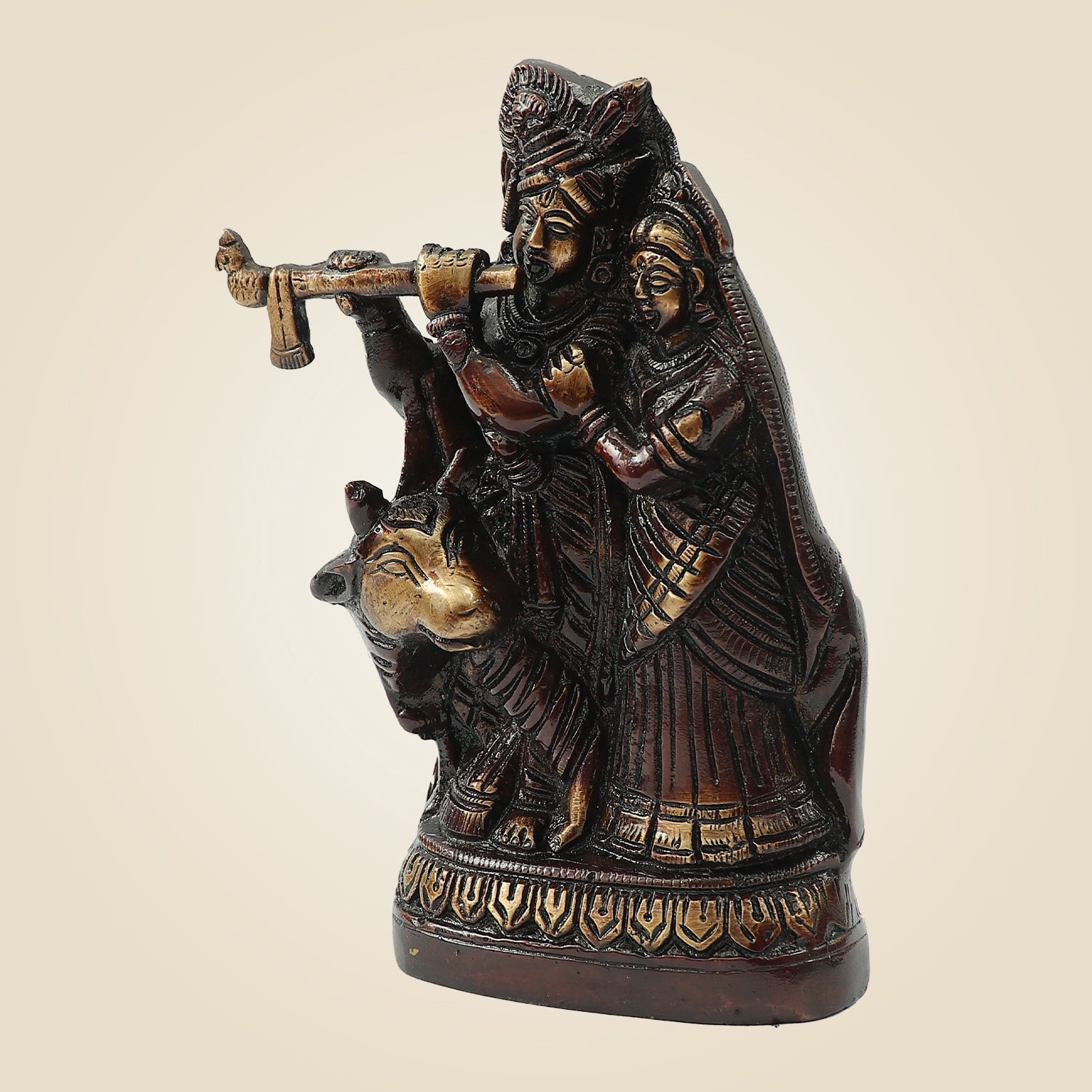 Brass Radha Krishna with Cow Idol 6" – Elegant Murti for Puja, Janmashtami & Home Décor