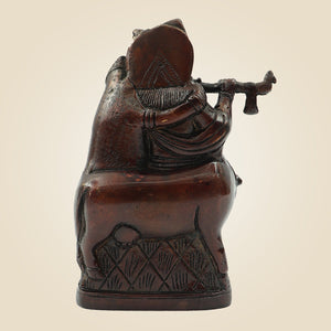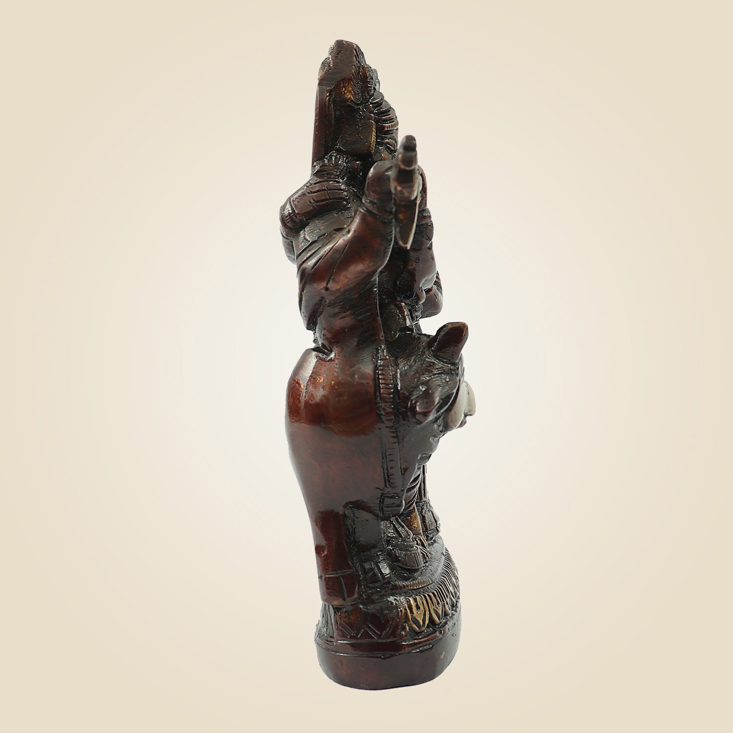 This finely crafted 6-inch brass murti of Radha Krishna, accompanied by a cow idol, brings a timeless elegance to your puja rituals and festive celebrations like Janmashtami. Its detailed artistry highlights the divine expressions, making it a meaningful addition to any altar or home décor. Durable and sacred, this murti not only enriches your spiritual practice but also adds a classic charm to your living space.