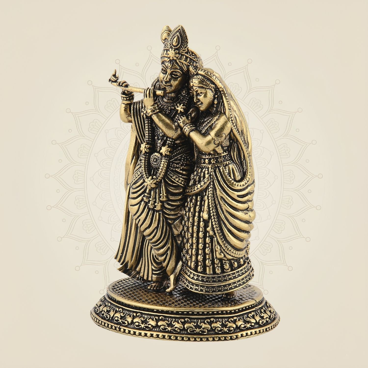 Radha Krishna Brass Idol – 4.25" Handcrafted Leela Statue for Spiritual & Decor