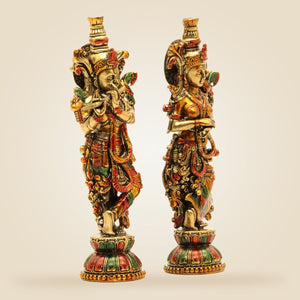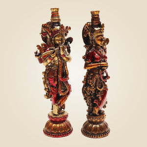 Radha Krishna Brass Idol Pair 5.5" – Handcrafted South Indian Style Murti