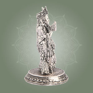 This 5-inch Silver Finish Radha Krishna Idol, crafted from pure brass, combines traditional artistry with lasting durability. Its refined silver finish highlights intricate details, making it a meaningful centerpiece for your altar or living space. Designed to invite blessings and harmony, this statue offers both spiritual significance and elegant decor appeal.