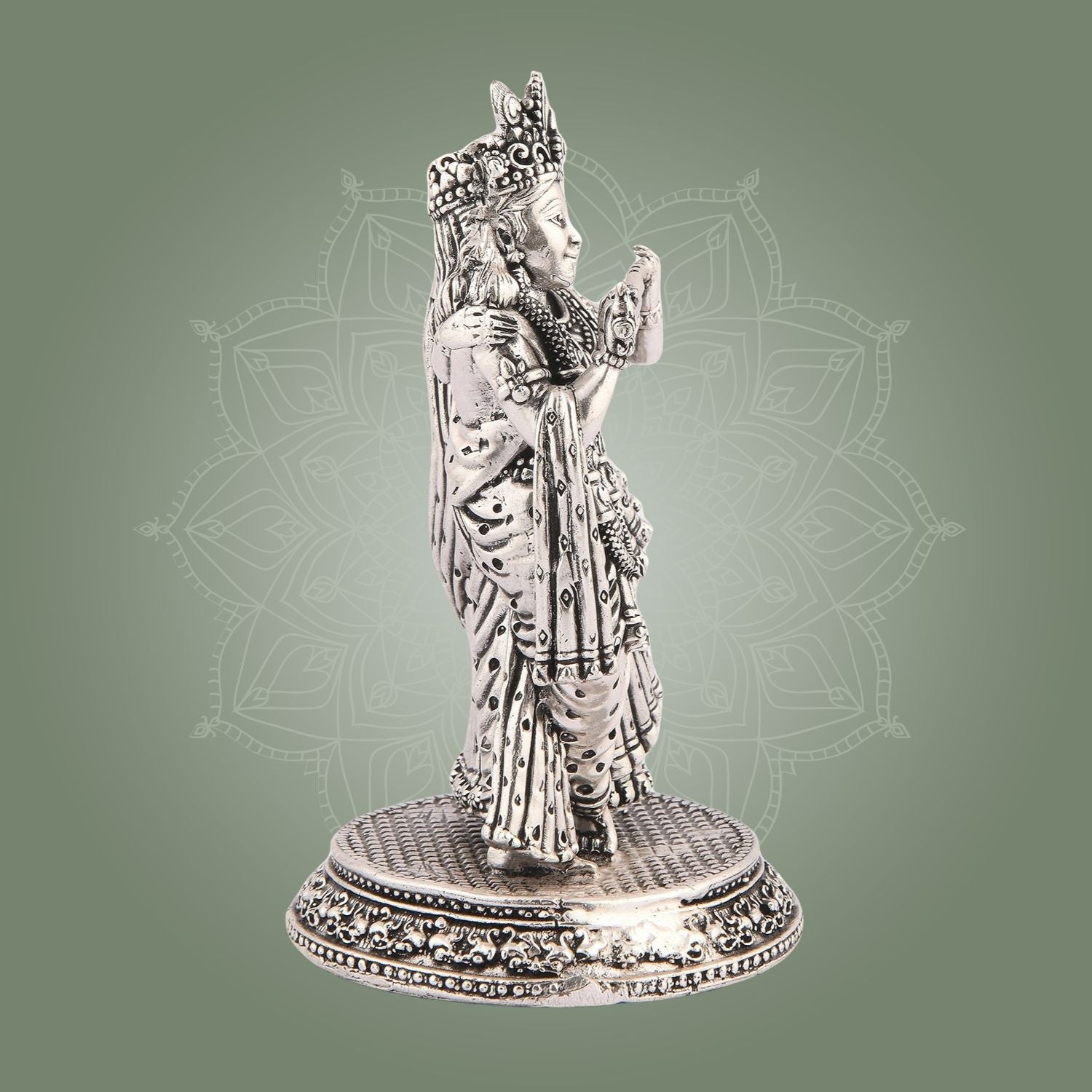 Silver Finish Radha Krishna Idol – 5" Pure Brass Statue for Blessings