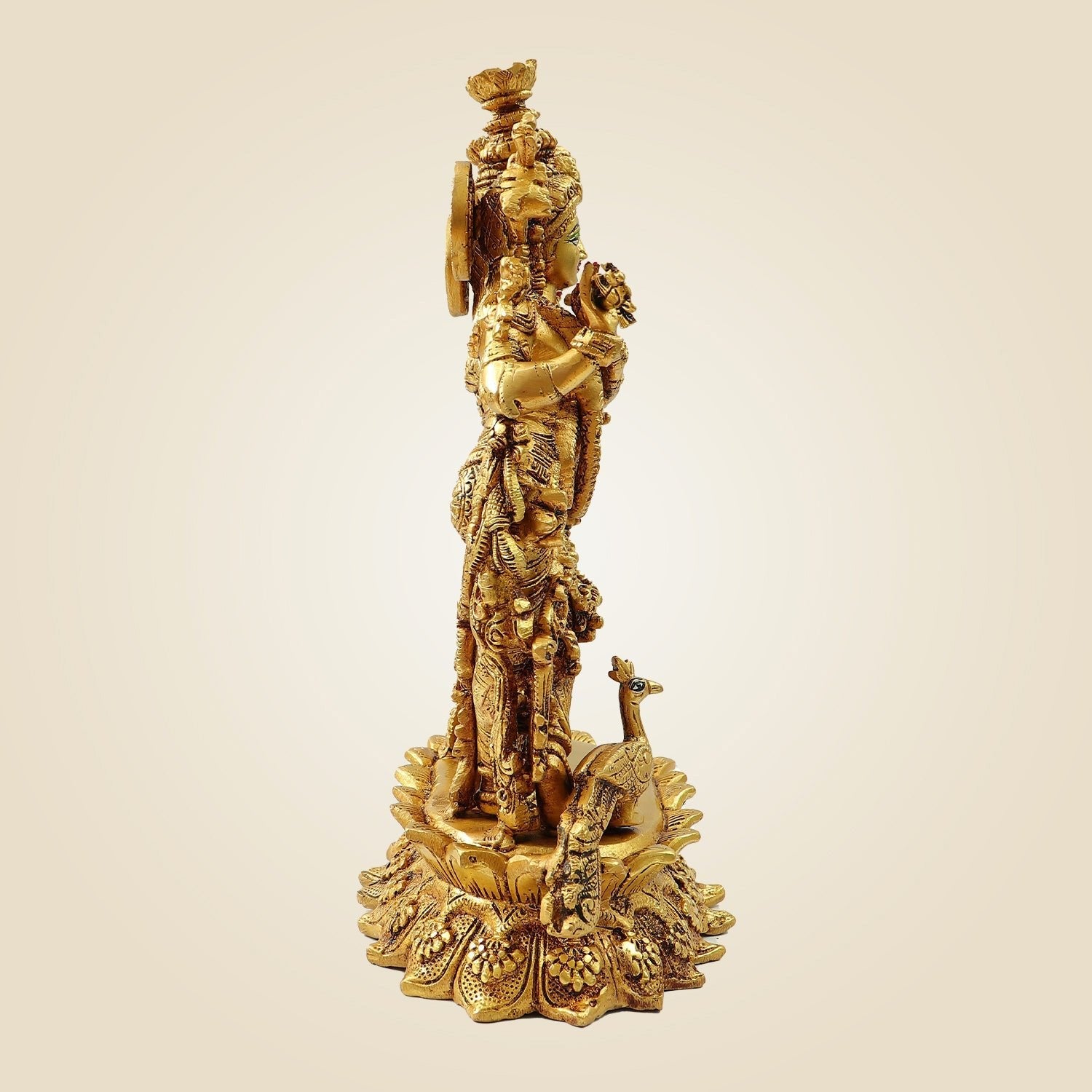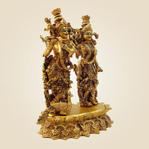 South Indian Style Radha Krishna Brass Idol with Peacock – Divine Décor Statue 13.5"