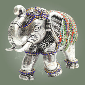 3.5" Silver Plated Brass Elephant with Fine Jewellery Stone Detailing