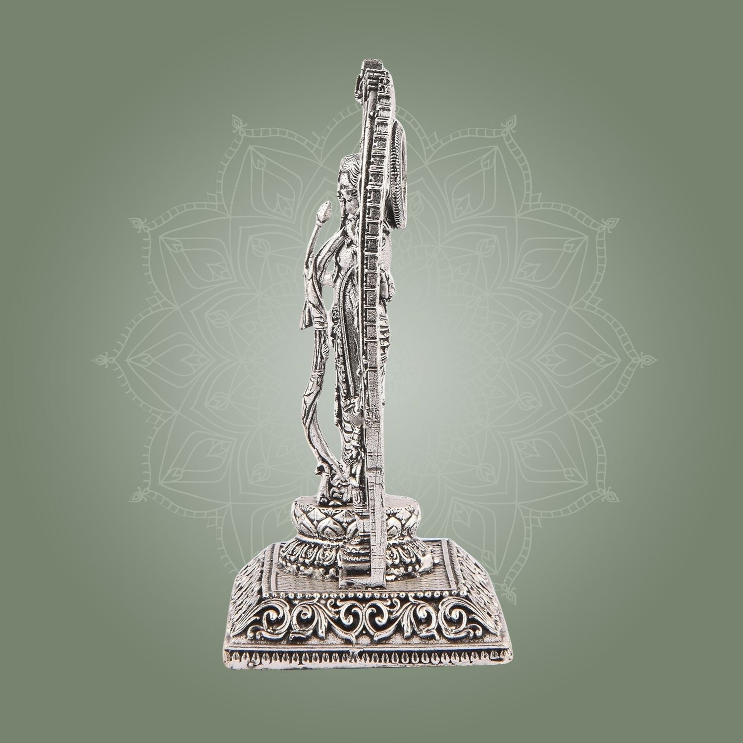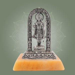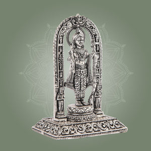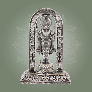 The Ram Lalla Idol 4" in silver finish brass is an exquisite addition to any home temple, office, or sacred space. Crafted with precision, this murti supports your daily pooja rituals while enhancing your decor with a timeless aesthetic. Its durable brass construction ensures longevity, making it ideal for both spiritual practices and elegant temple displays. Perfectly sized for versatility, it brings a serene presence wherever placed.
