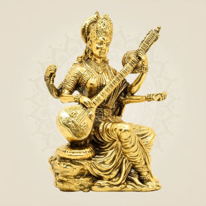 Brass Saraswati Maa Idol 5" – Handcrafted Maa Saraswati Murti for Temple & Study Room