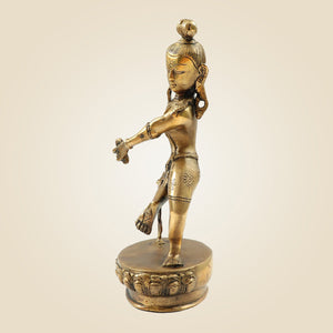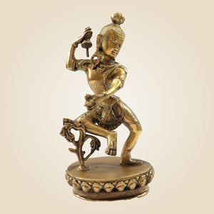 This handcrafted 9.25" brass Nataraja Murti captures the dynamic essence of Shiva’s cosmic dance with intricate Nepalese artistry. Each detail, from the flowing movements to the divine expression, reflects traditional craftsmanship that honors Hindu spiritual symbolism. Perfect for collectors or those seeking a refined devotional piece, this idol offers a timeless representation of balance and energy within your sacred space.