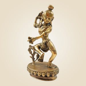 This handcrafted 9.25" brass Nataraja Murti captures the dynamic essence of Shiva’s cosmic dance with intricate Nepalese artistry. Each detail, from the flowing movements to the divine expression, reflects traditional craftsmanship that honors Hindu spiritual symbolism. Perfect for collectors or...