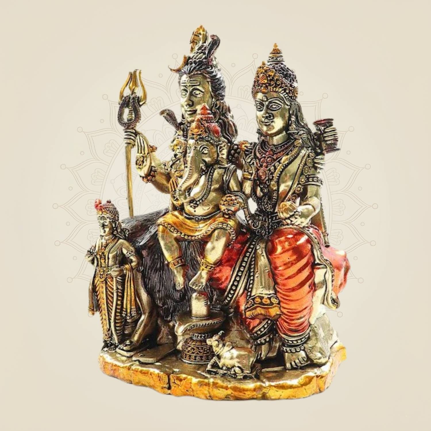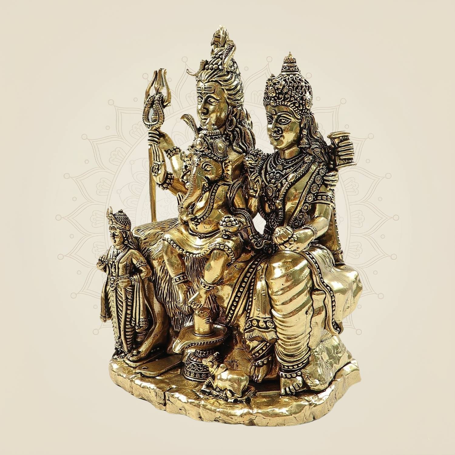 Brass Shiv Parivar Murti 6.25" | Lord Shiva with Parvati, Ganesha & Kartikeya Statue for Temple Decor