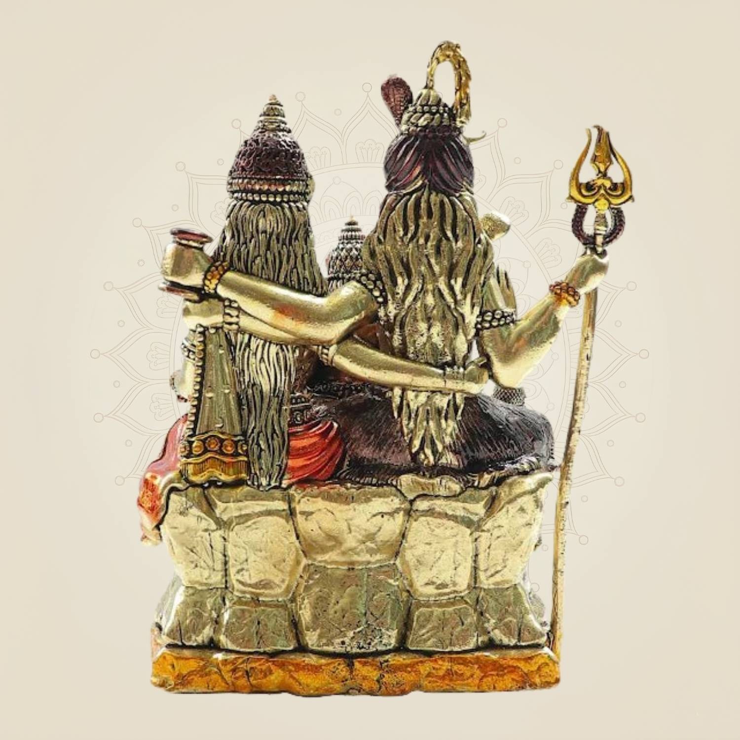 This finely crafted Brass Shiv Parivar Murti, measuring 6.25 inches, beautifully depicts Lord Shiva alongside Parvati, Ganesha, and Kartikeya. Ideal for temple decor, this statue embodies the spiritual unity of the divine family, inviting serenity and reverence into your sacred space. Its durable brass construction ensures lasting elegance and a timeless tribute to your devotion.