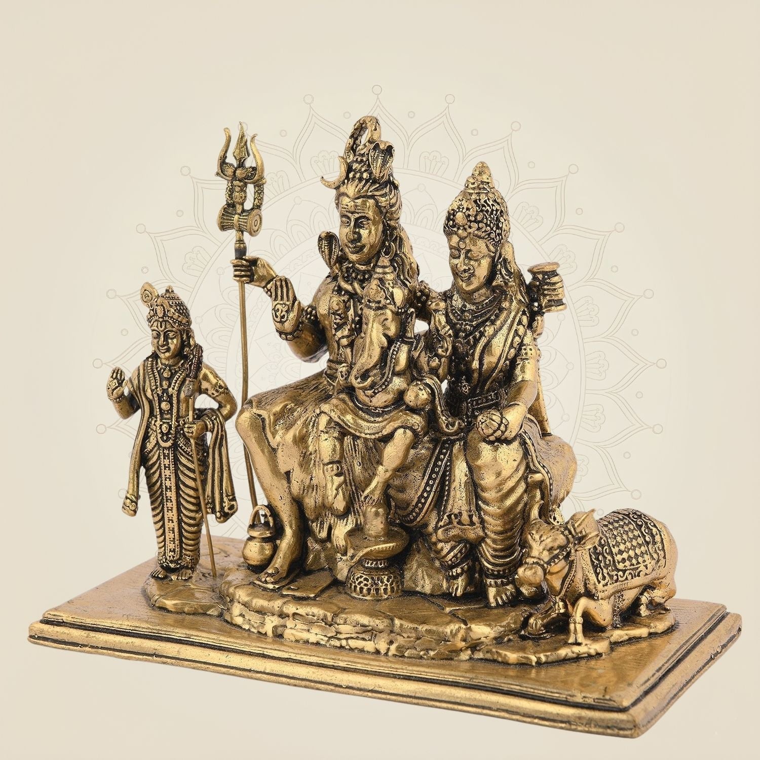Divine Shiv Parivar Brass Statue – 3.75" Handcrafted Idol for Unity and Spiritual Use