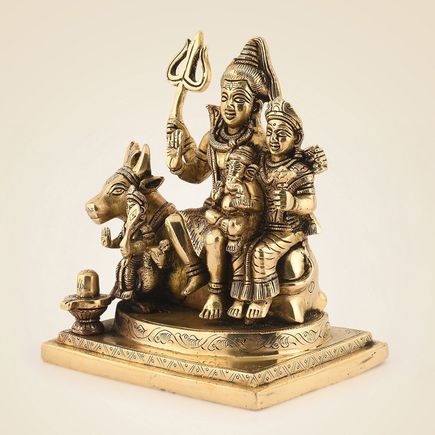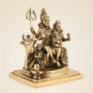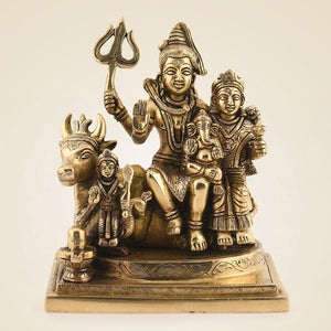 Shiv Parivar Brass Idol – 7" Divine Family Ensemble Statue in for Peace & Prosperity