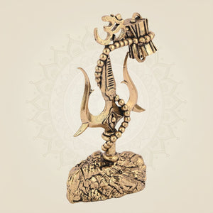 Brass Trishul with Damru & Om – 3.75" Superfine Lightweight Spiritual Decor