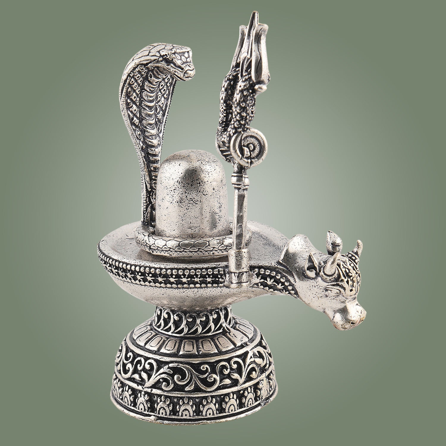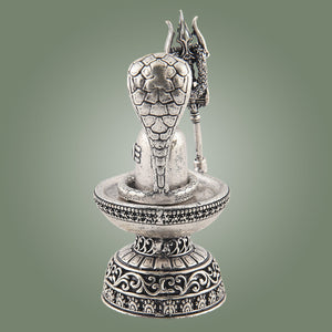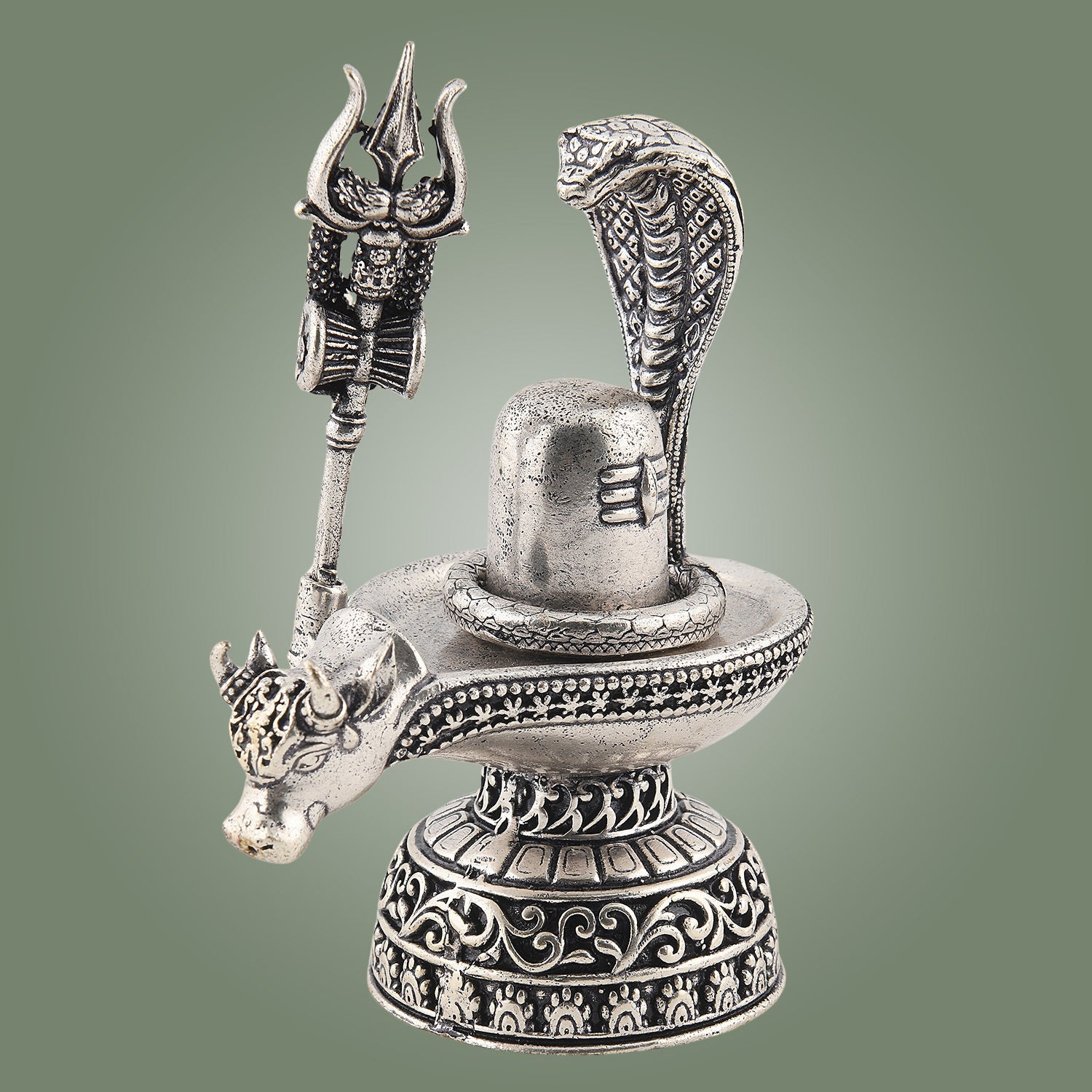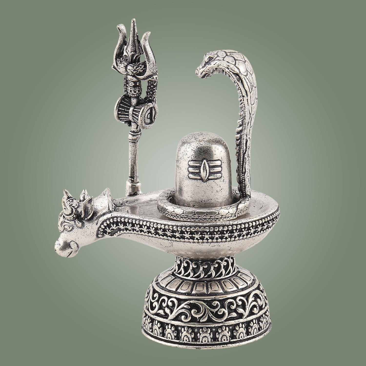 This 3.75-inch silver finish brass Shivling Idol offers a lightweight yet durable design, ideal for home pooja or temple use. Crafted with precision, its elegant finish enhances devotional spaces while ensuring long-lasting beauty. The brass material lends strength, and the silver plating adds a sacred, refined appearance, making it a meaningful centerpiece for worship.