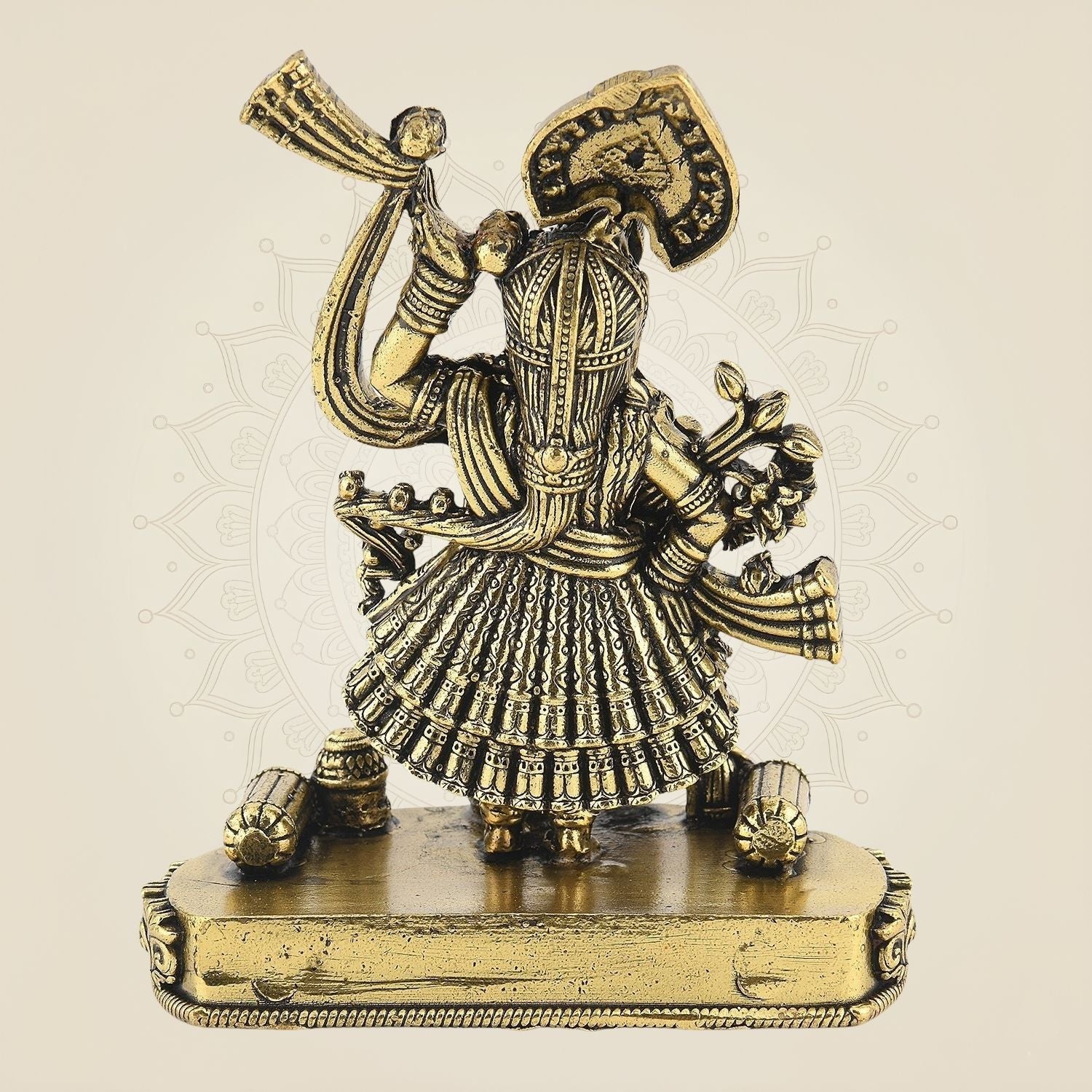 • Malleability: Brass is a highly malleable metal, allowing skilled artisans to create intricate and detailed designs that beautifully capture the essence of the deity or figure being depicted. This versatility enables the crafting of idols with fine features and symbolic representations.