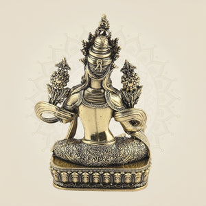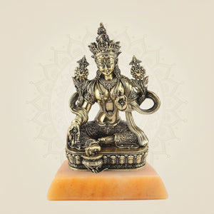The 4.25" Tara Maa Brass Idol is a meticulously handcrafted statue, ideal for enhancing your pooja room or home decor with a touch of divine grace. Crafted from high-quality brass, this idol embodies traditional artistry and spiritual significance. Its compact size makes it perfect for personal altars, inviting blessings and serene energy into your sacred space. Durable and detailed, this piece serves both devotional and aesthetic purposes, reflecting expert craftsmanship and reverence.