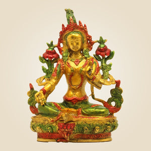 Tibetan Green Tara Brass Idol – Hand-Painted Compassion Statue for Home 8.5"