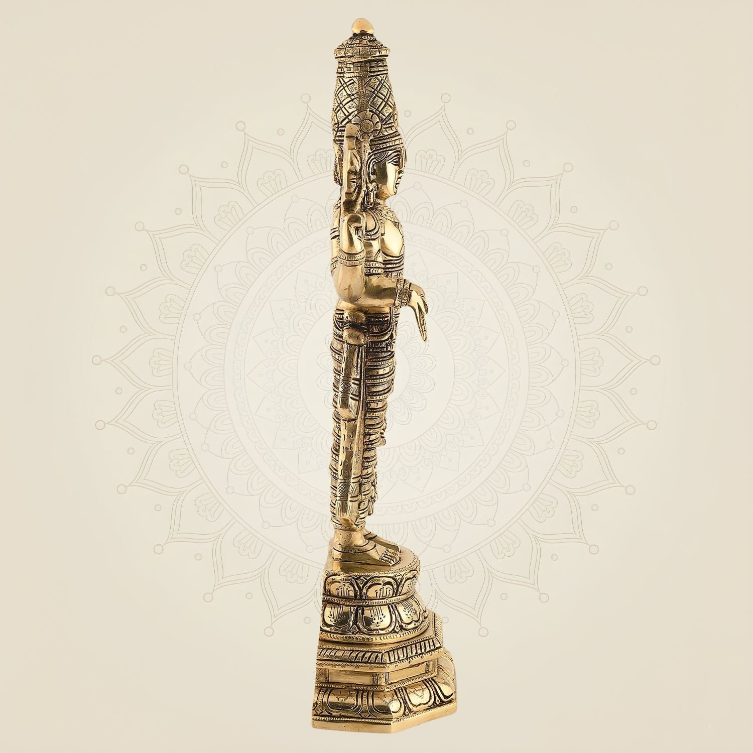 β’ Durability: Brass is resistant to corrosion and tarnishing, ensuring that idols retain their beauty and integrity over time, even with regular handling and worship. This durability makes brass a lasting and reliable choice for home temples, as the idols remain pristine and vibrant for many years.