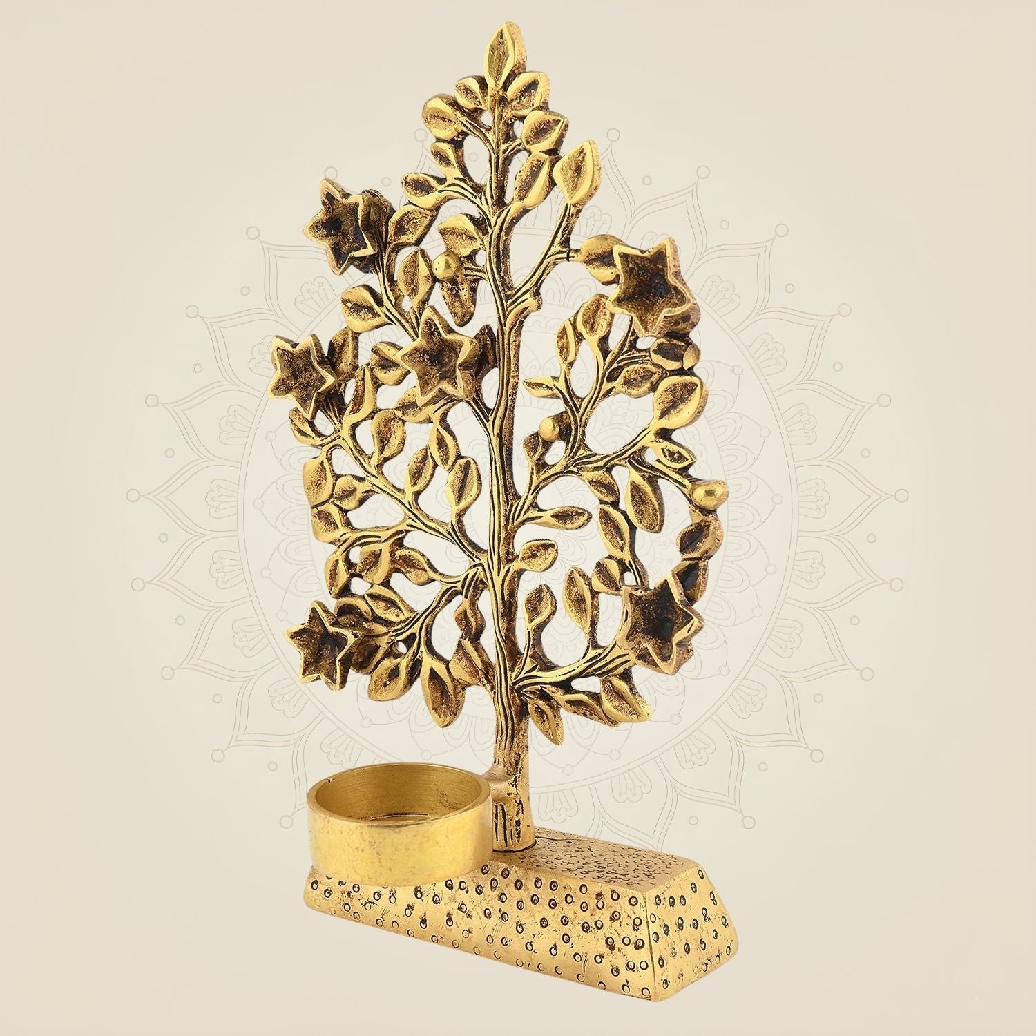 9.5" Pure Brass Tree of Life with Diya – Handcrafted Spiritual Decor