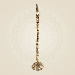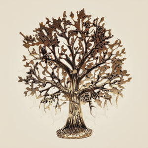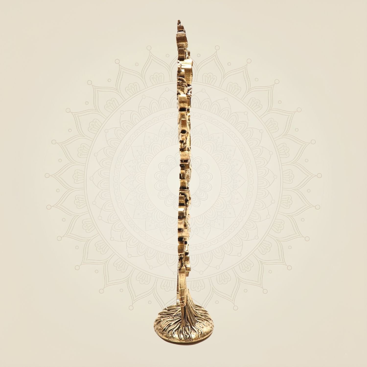 This 6.25-inch handcrafted brass Kalpavriksha, or "Tree of Life," features intricately detailed birds perched among its branches. Rooted in spiritual symbolism, this wall hanging embodies growth, prosperity, and harmony. Its artisanal craftsmanship ensures a timeless piece that enriches any space with cultural depth and elegance. Ideal for those seeking meaningful decor with expert artistry.