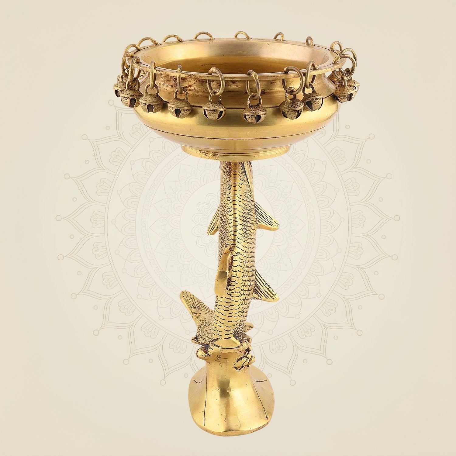 Big Fish Brass Urli Bowl 11" – Ethnic Pot for Diwali, Temple & Home Decor Gift