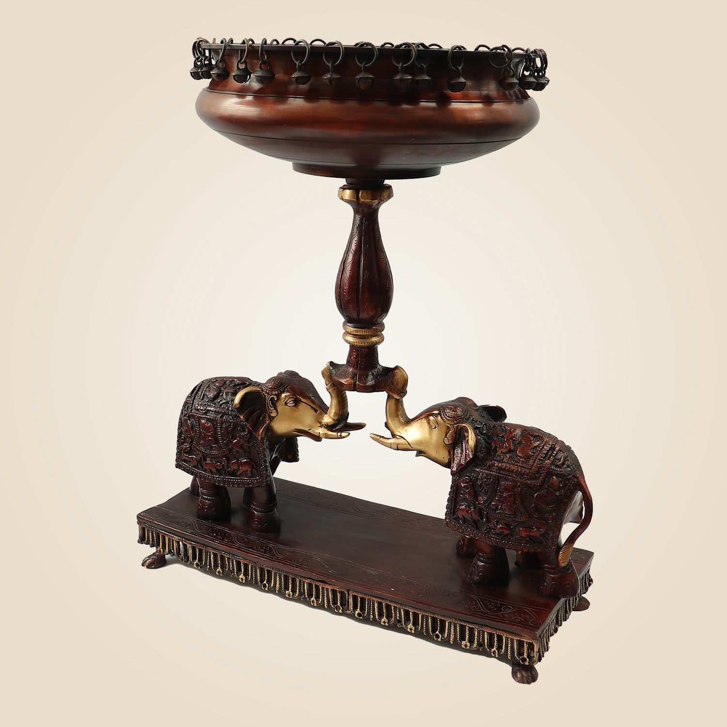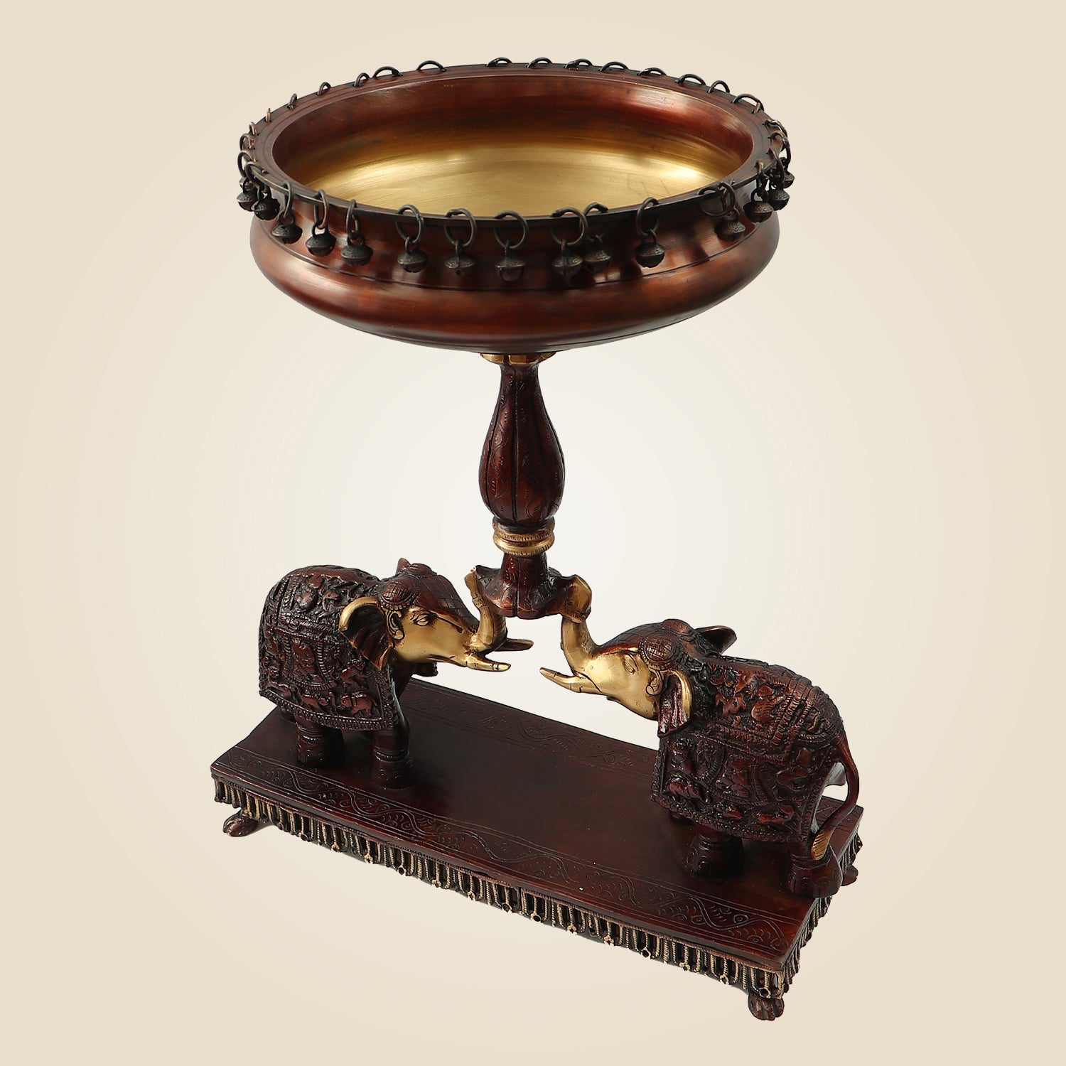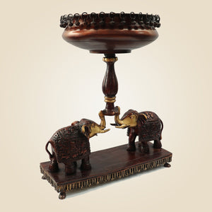 Brass Urli with Elephant Stand – 21" Handcrafted Décor for Festive Spaces